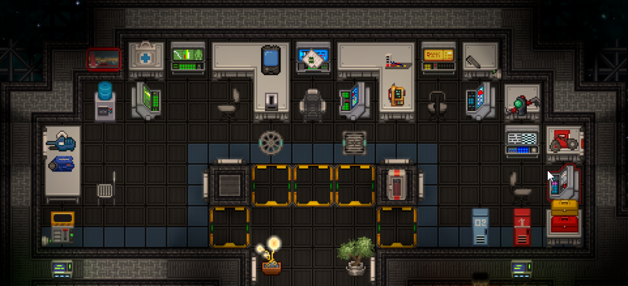 У капитана есть просторная каюта, в комплекте с которой идут: идентификационная и коммуникационная консоли, джетпак, диск ядерной аутентификации, лучший бронированный скафандр на станции и ваша гордость — наградной антикварный лазерный пистолет.
